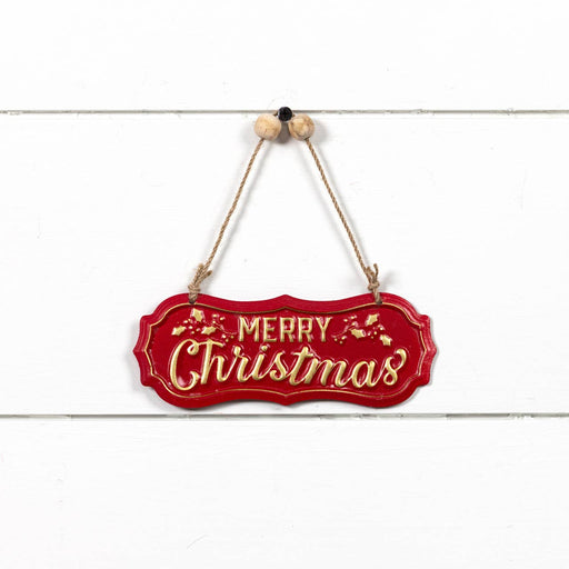 Red and Gold "Merry Christmas" Metal Sign Ornament