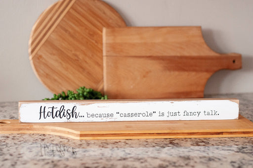 Handmade 365$10.00"Hotdish...because "casserole" is just fancy talk" SIZE 1.5 x 16 inches COLOR Two color options available, white background with black lette...