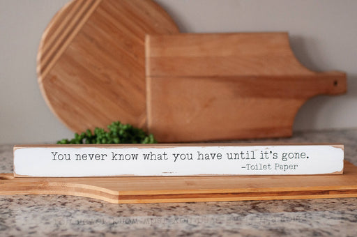 Handmade 365$10.00"You Never Know What You Have Until It's Gone- Toilet Paper" SIZE 1.5 x 16 inches COLOR Two color options available, white background with b...