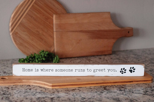 Handmade 365$10.00"Home Is Where Someone Runs To Greet You." SIZE 1.5 x 16 inches COLOR Two color options available, white background with black lettering, an...