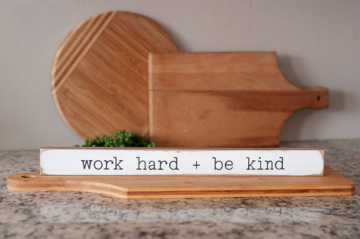 Handmade 365$10.00"Work Hard + Be Kind" SIZE 1.5 x 16 inches COLOR Two color options available, white background with black lettering, and black background wi...