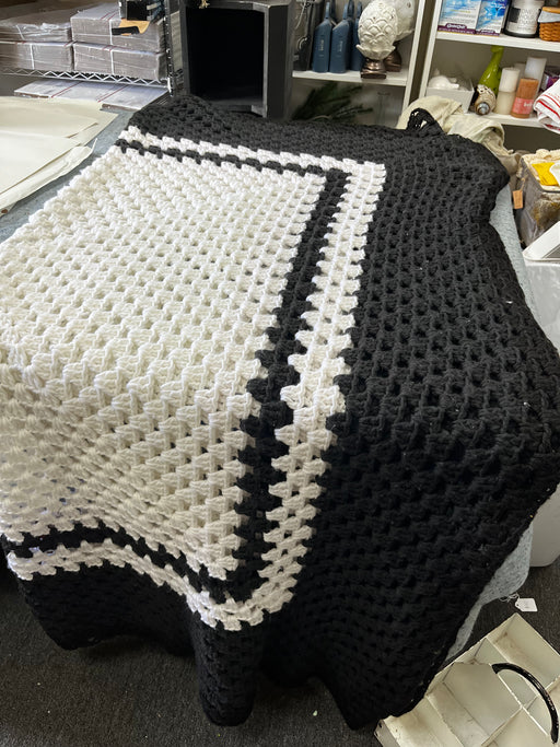 Black & White Handmade Afghan | Crocheted Throw Blanket 60” square