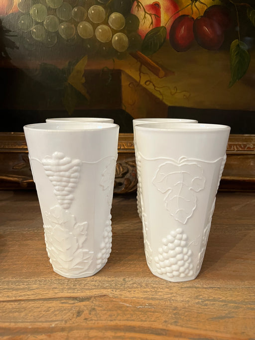 Vintage Milk Glass Tumblers | Set of 4 | Harvest Grape pattern