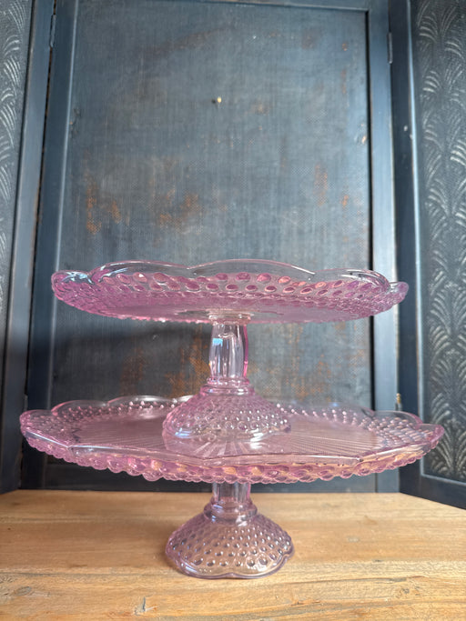 Vintage Pink Hobnail Gorham Emily's Attic Collection 11.5” & 13" Footed Cake Plate Stands