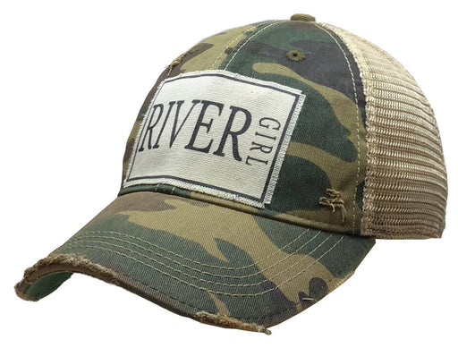 Vintage Life$24.99Vintage distressed trucker cap "River Girl" Color: Camo Distressed Material: cotton/polyester blend, mesh back. Size: One size fits most, with an ...