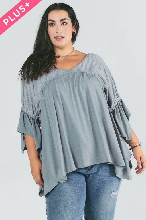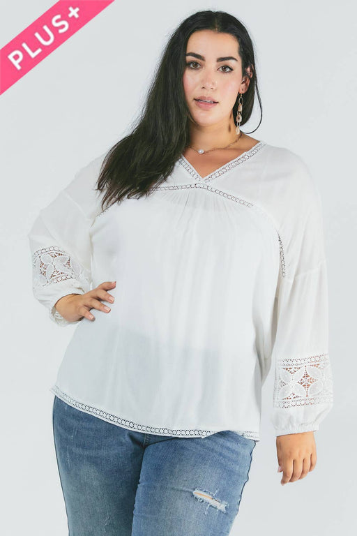 Davi & Dani - PLUS LACE ACCENT LOOSE FIT V NECK TOP